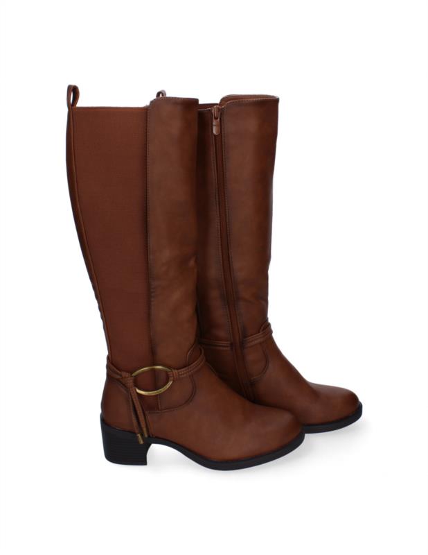 Bota alta tacón bajo elástico en la pierna 2413 kaki marr.