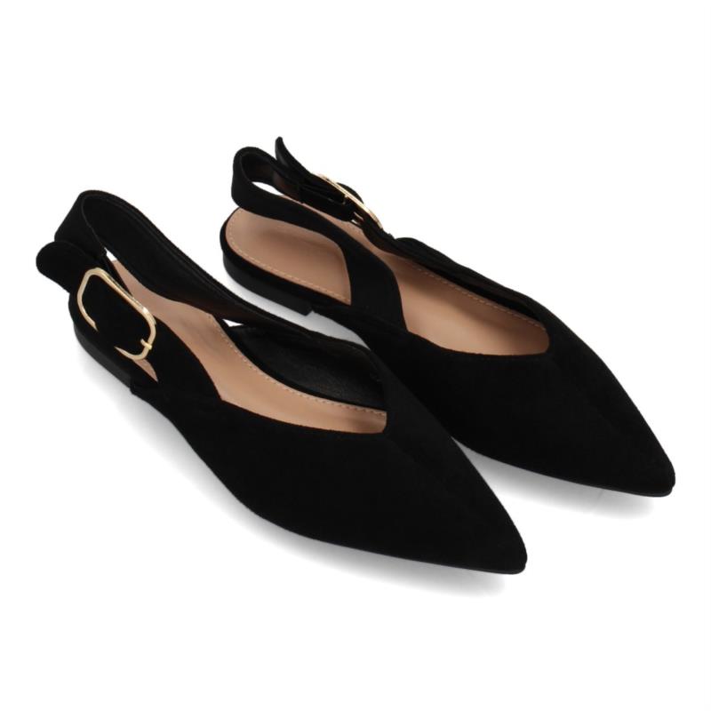 Bailarina destalonada para mujer con diseño de punta fina y hebilla dorada, suela plana, perfectas para llevar durante todo el día.