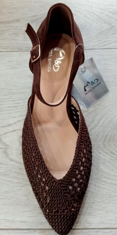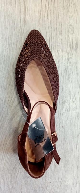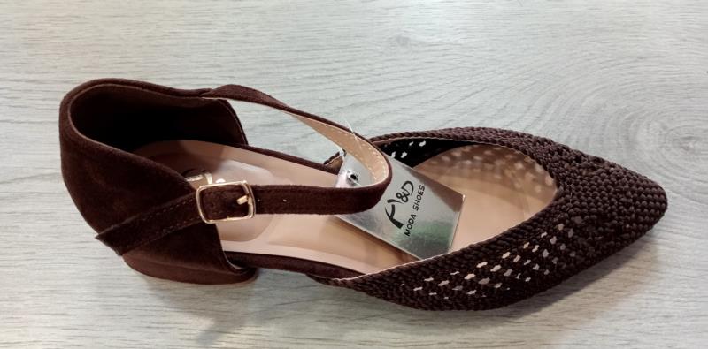 H&D zapato tejido tacón bajo ancho YZ25-73 MARRÓN CHOCOLATE